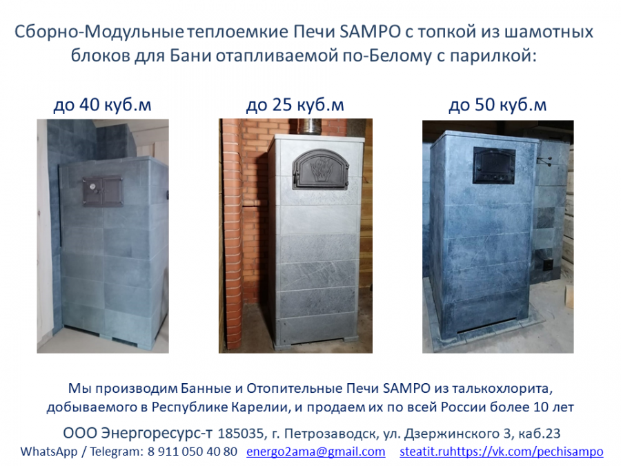 Каталог печей SAMPO для Бани отапливаемой по-Белому