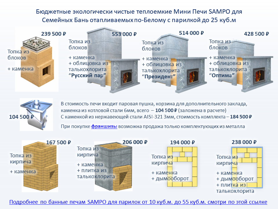 Ссылка на прайс листы Печей  SAMPO и SAMPO-К для Бани по-Белому