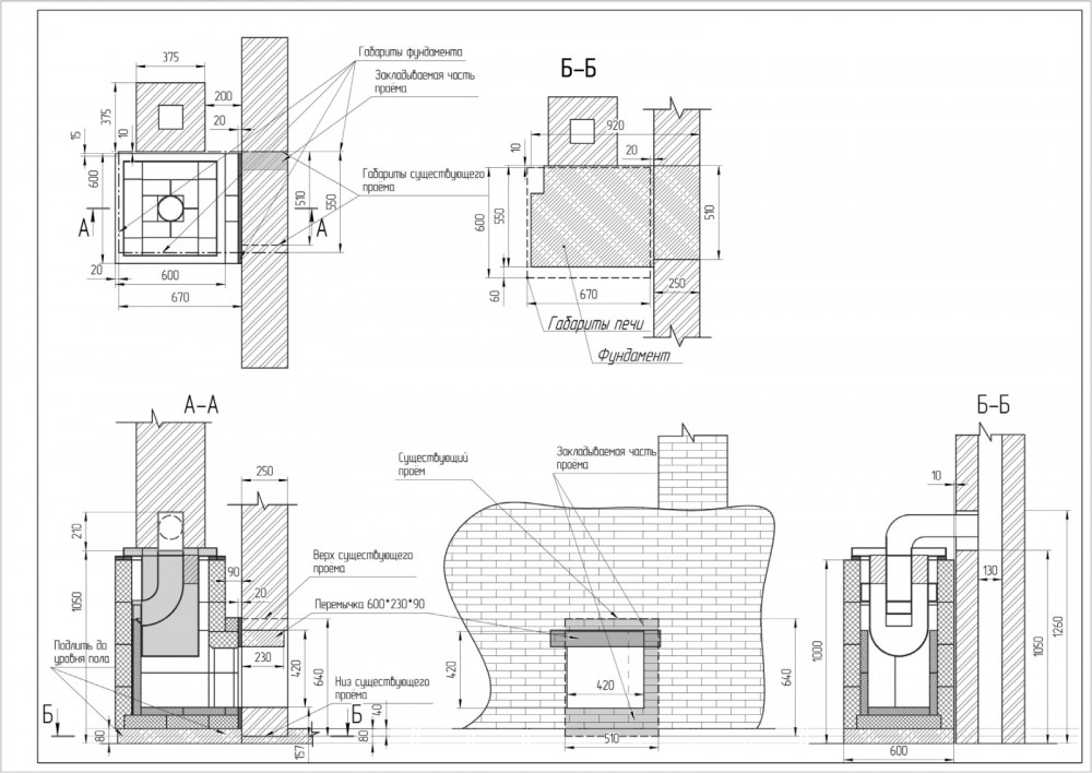 Глубина приведена для печи с выносной топкой 70 мм и может изменяться в зависимости от длины тоннеля выносной топки каждой конкретной печи.