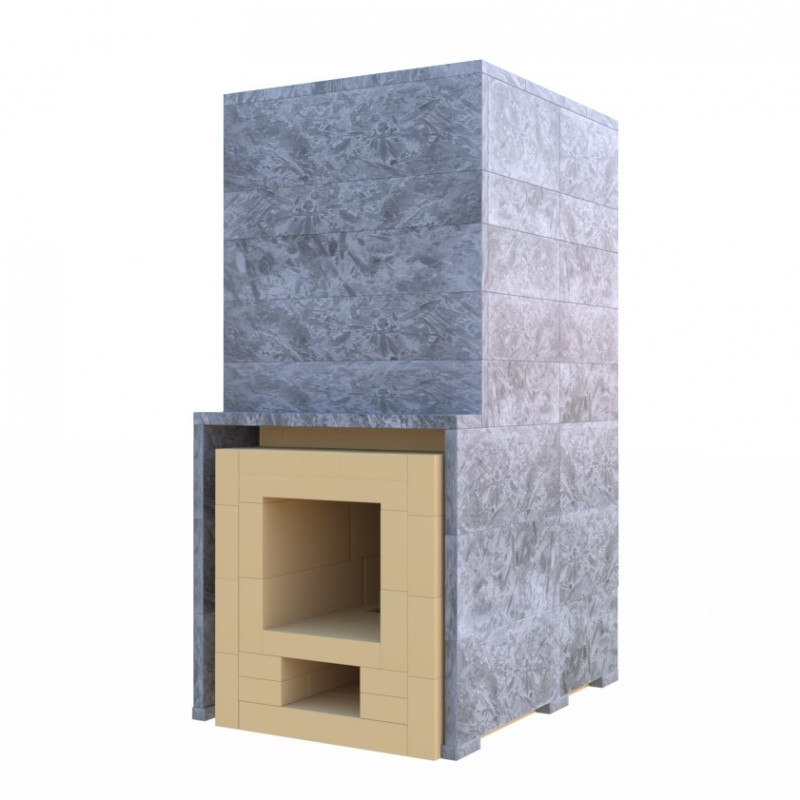 - Расположенная внутри шамотной топки и закрытая с 5 сторон каменка из нержавеющей стали AISI 321 толщиной 3 мм не контактирует с воздухом парильного отделения