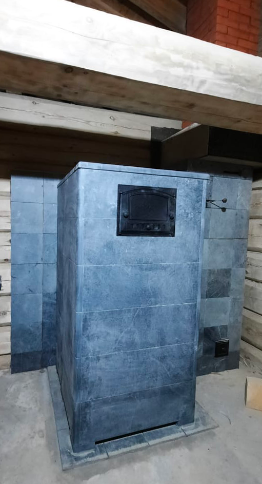 - Длительную, до 4 часов без дополнительной подтопки, стабильную температуру в парильном помещении 60–70°C.