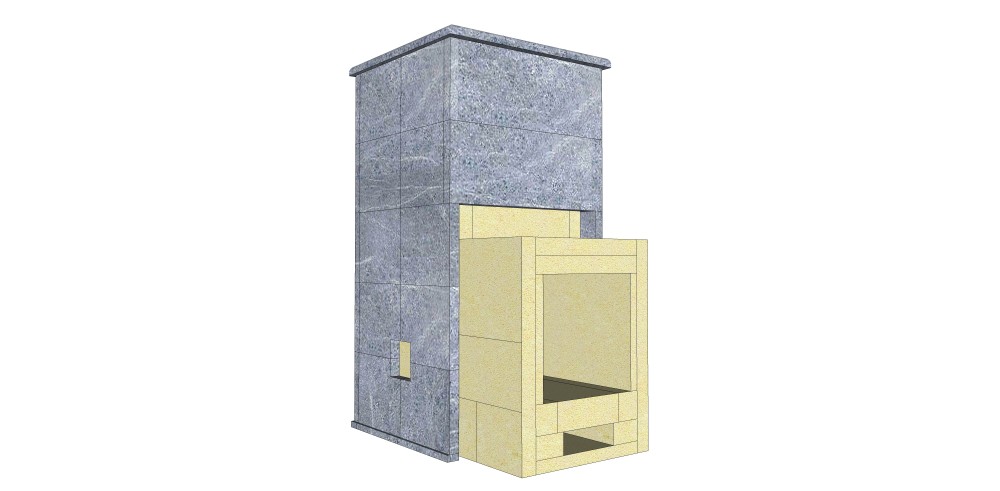 - Быстрый разогрев парилки, за счёт конвекционного воздуха, проходящего между шамотной топкой и внешним корпусом из талькового камня.