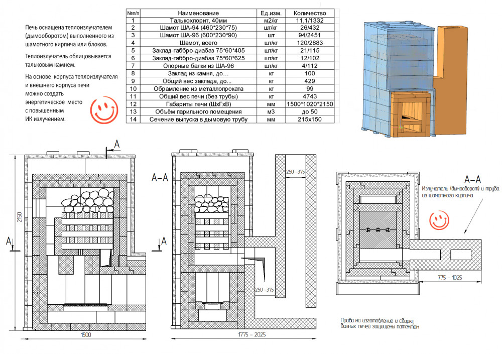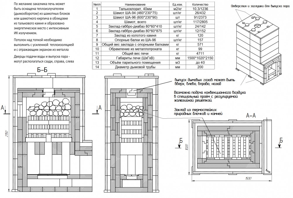 Характеристики Большой Печи плюс с Выносной Топкой из Шамотных Блоков: