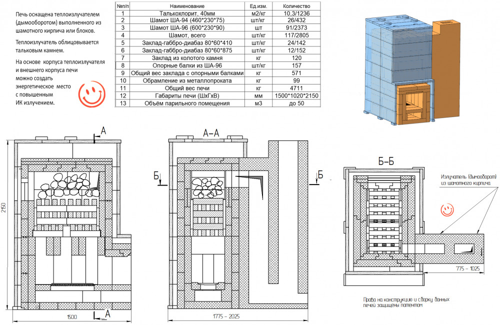 - Мягкое тепловое ИК излучение с талькового камня внешнего корпуса, отделенного от перегретой шамотной топки воздушным проемом.