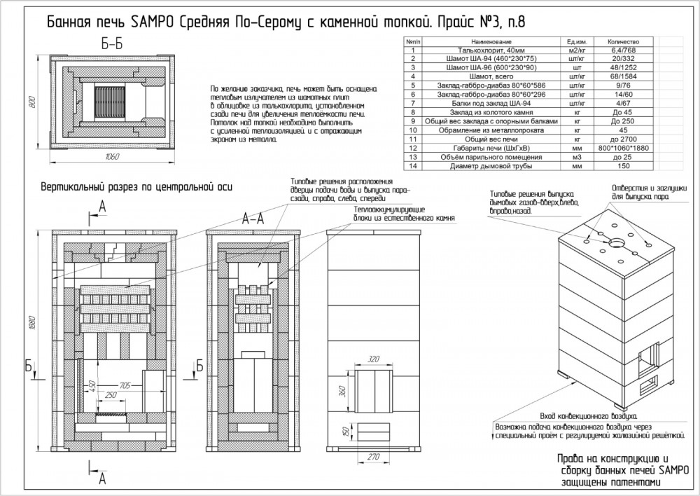 - Печь SAMPO для Бани по-Серому – единственная заводская Банная Печь без металла