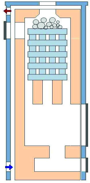 - Основной теплоаккумулирующий заклад выполняется из Брусков 60х80 мм термостойкого природного камня, в базовом варианте из габбро.