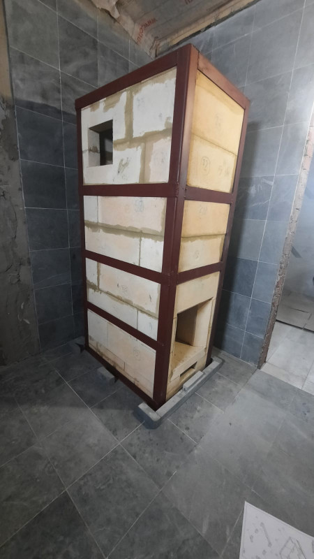 - Короткое время сборки топки и внешнего корпуса из заранее изготовленных Шамотных Блоков и плит из Талькового камня.