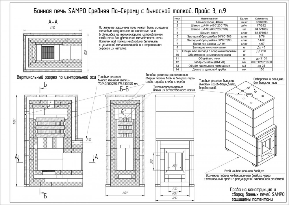 Характеристики Средней Печи SAMPO с Топкой из Шамотных Блоков