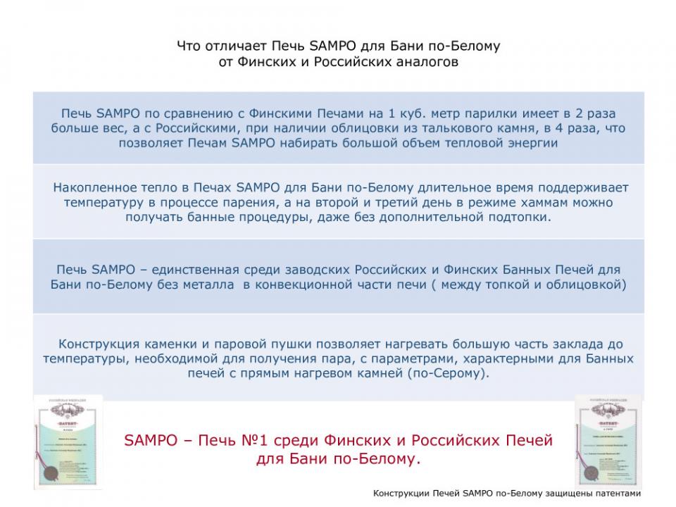Дополнительная информация по оздоровительным свойствам Банной Печи SAMPO для Бани по-Белому