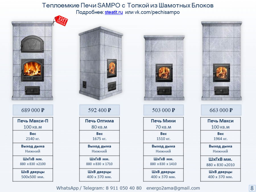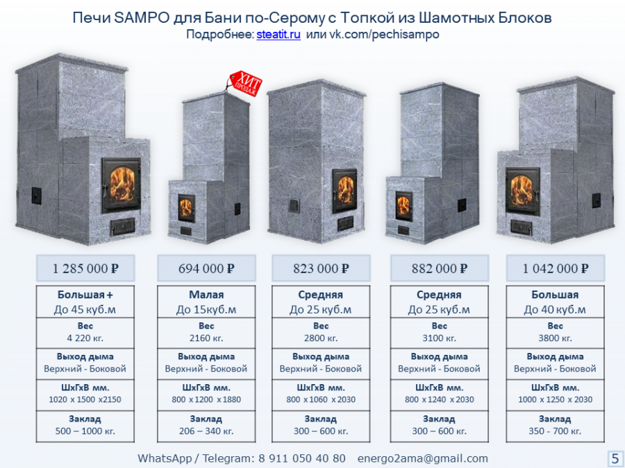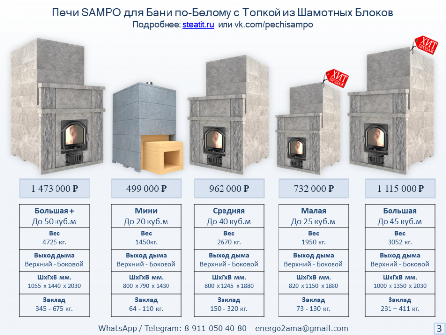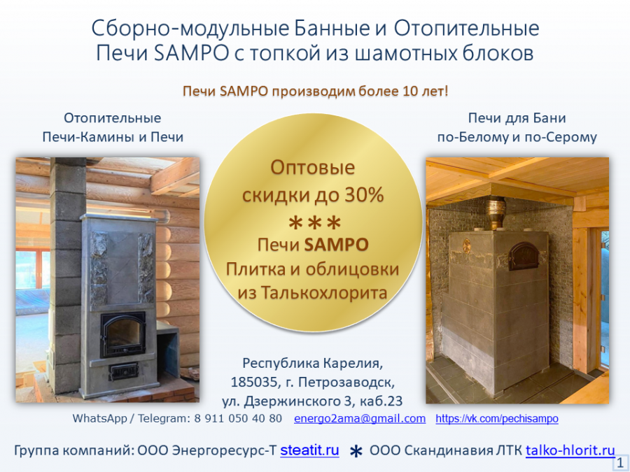 Каталог печей SAMPO для Бани отапливаемой по-белому