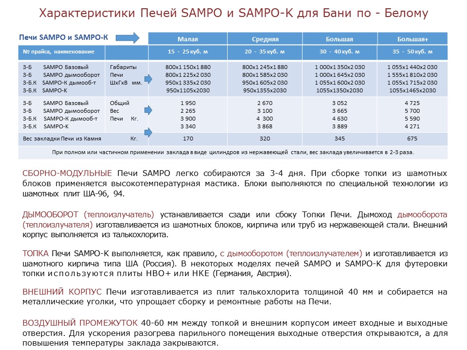 Каталог печей SAMPO для Бани отапливаемой по-белому