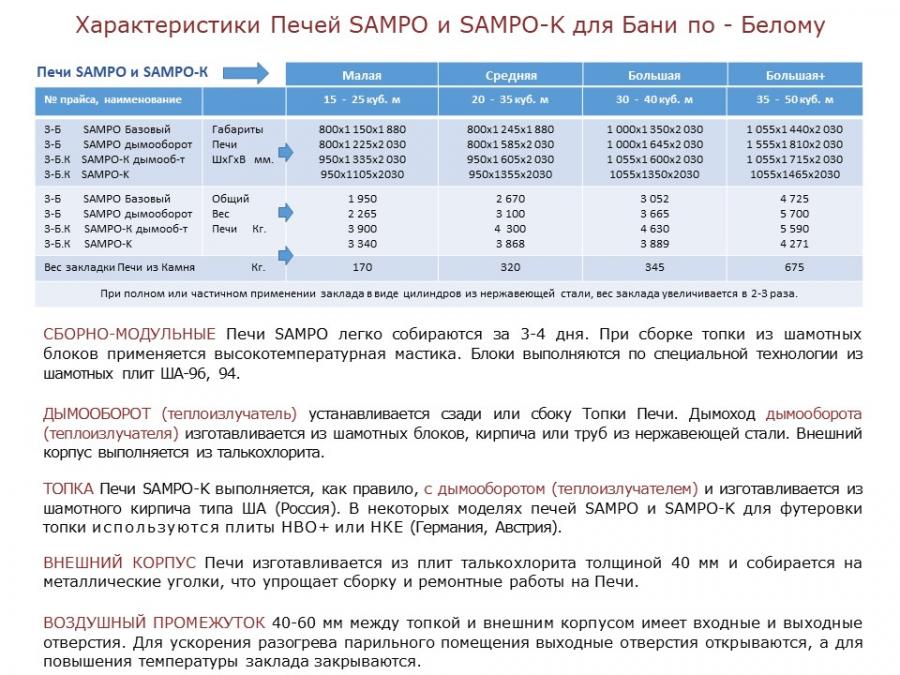 Каталог печей SAMPO для бани по-Белому