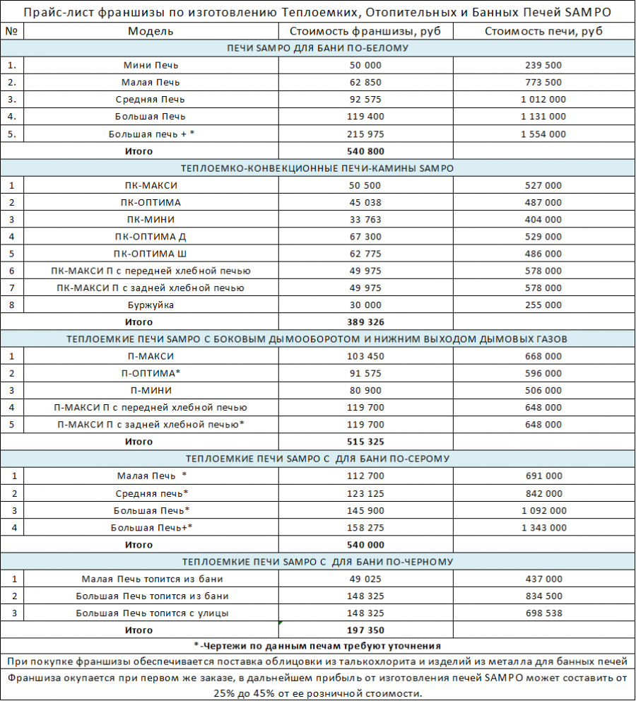 Каталог печей SAMPO для Бани отапливаемой по-белому